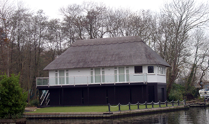 Replacement boathouse with two bedroom holiday accommodation above. This required liaison with Broads Authority Planners. Specialist piled foundations and timber structure topped with thatched roof and glazed safety rails around the exterior first floor immediately gave a period feel to this new addition to our beautiful Broads.